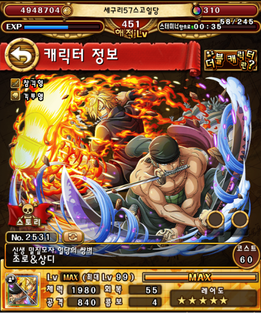 원피스 트레저크루즈 VS 조로&상디 유대결전 얼티밋 (힘)(속)(지) 모든 공략 (선박 메가로 뽑기)
