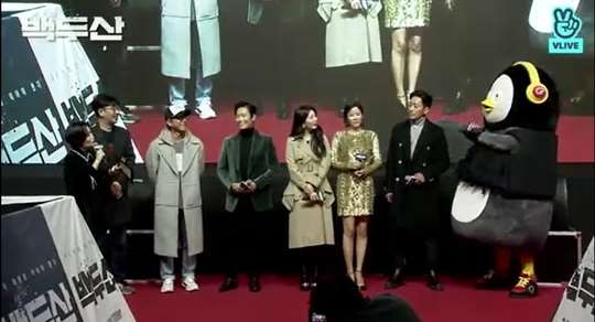 '백두산' 배우들과 펭수가 만났습니다.