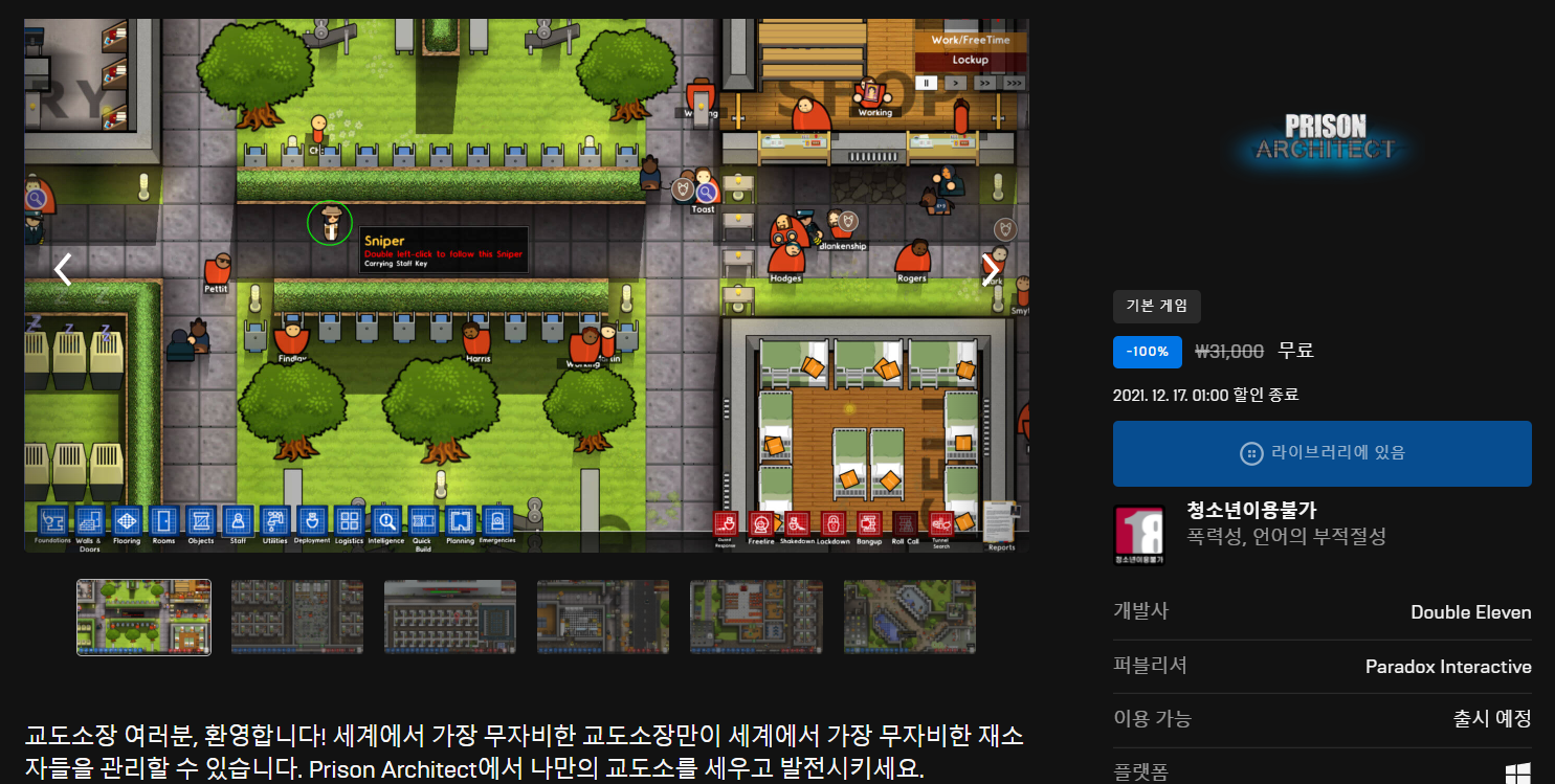 Prison Architect 다운로드 : https://www.epicgames.com/store/ko/p/prison-architect