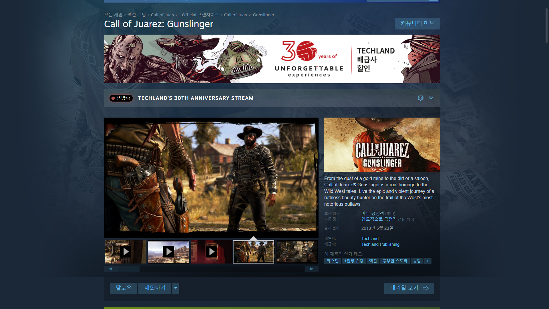 Call of Juarez: Gunslinger 무료다운주소 : https://store.steampowered.com/app/204450