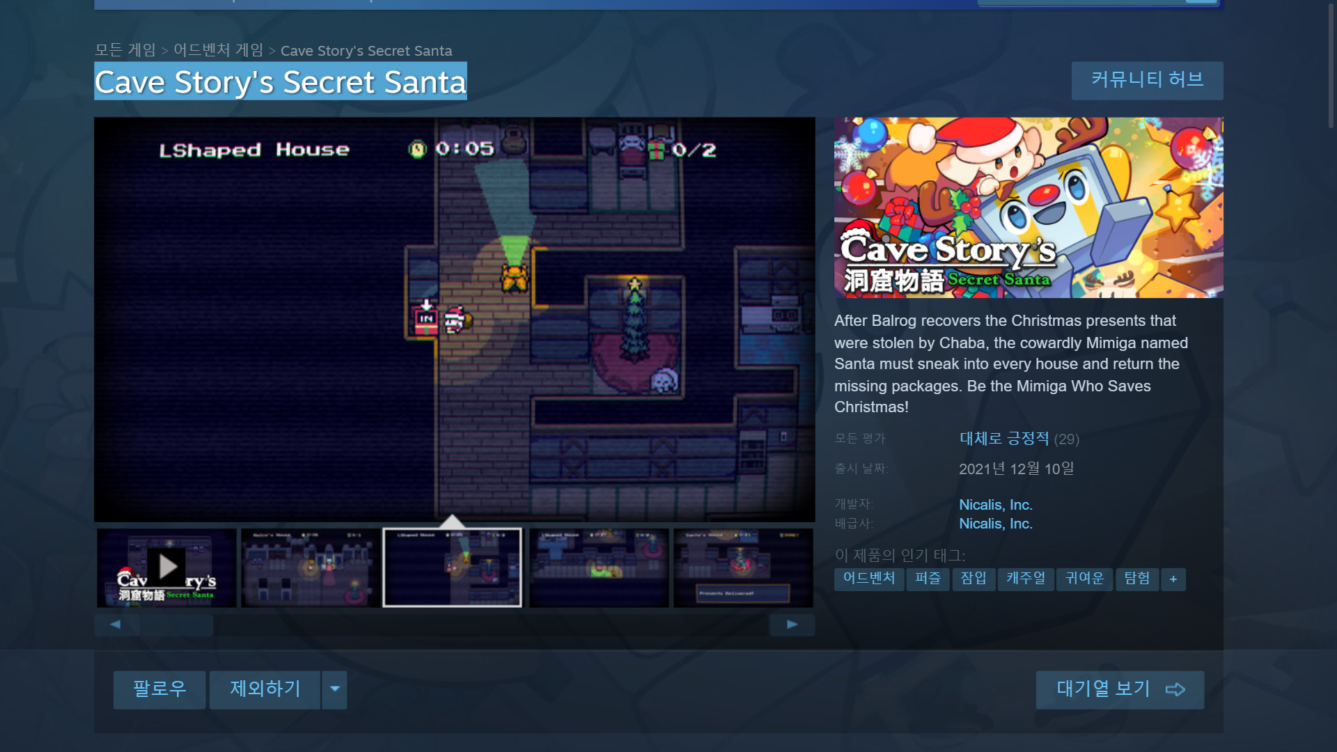 Cave Story's Secret Santa 다운받기 : https://store.steampowered.com/app/1812280/Cave_Storys_Secret_Santa/